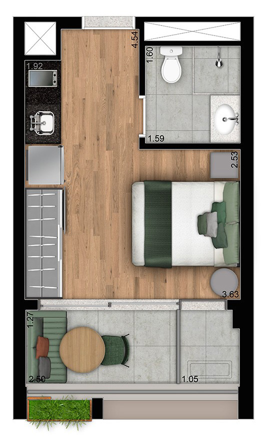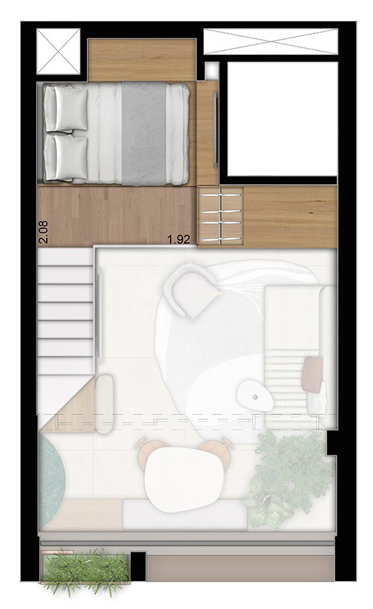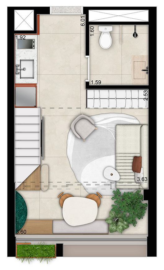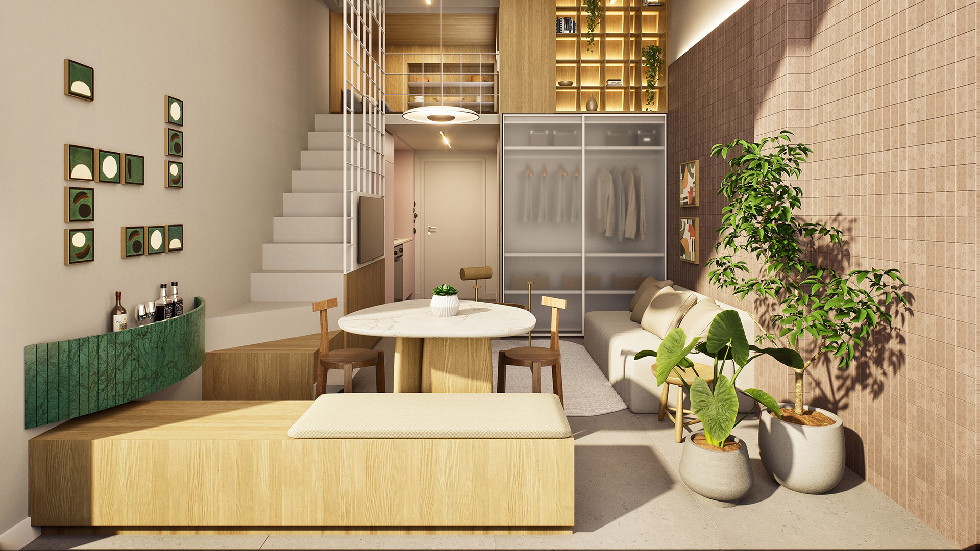 Com um design moderno e elegante, o Eleva Harmonia Studios traz espaços bem planejados que garantem a praticidade do dia a dia, assim como elevam o seu padrão de qualidade de vida.