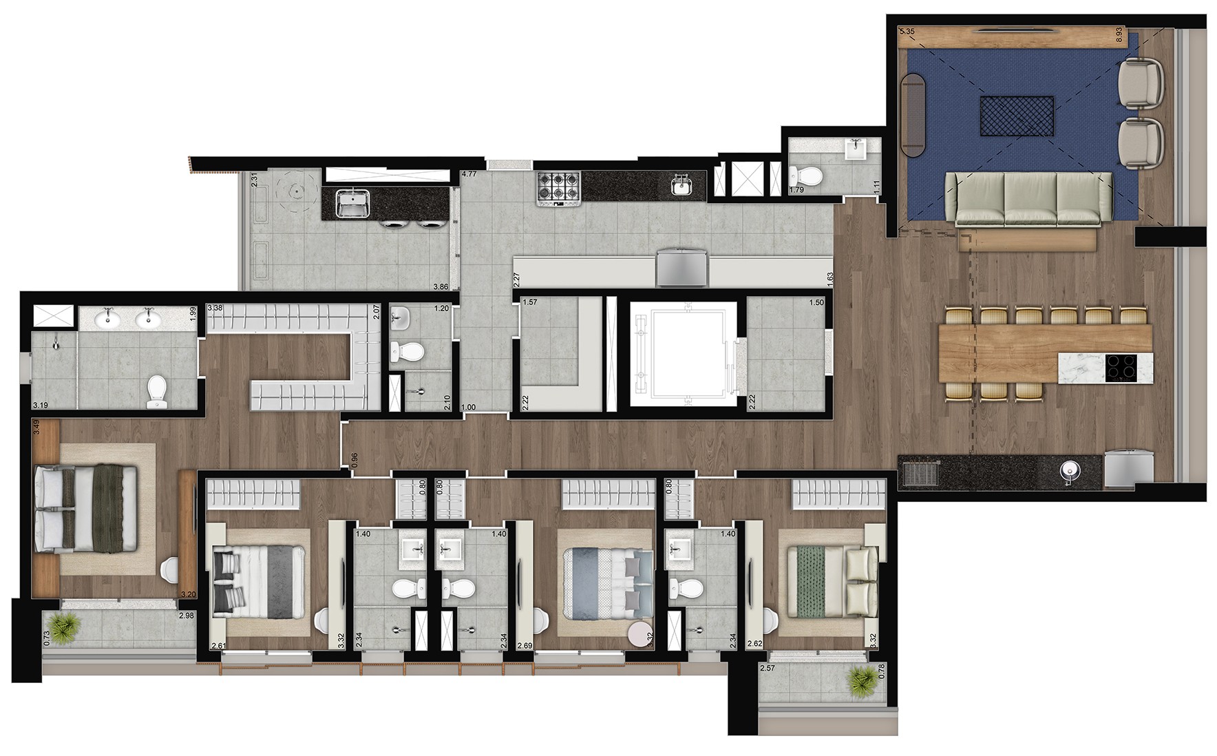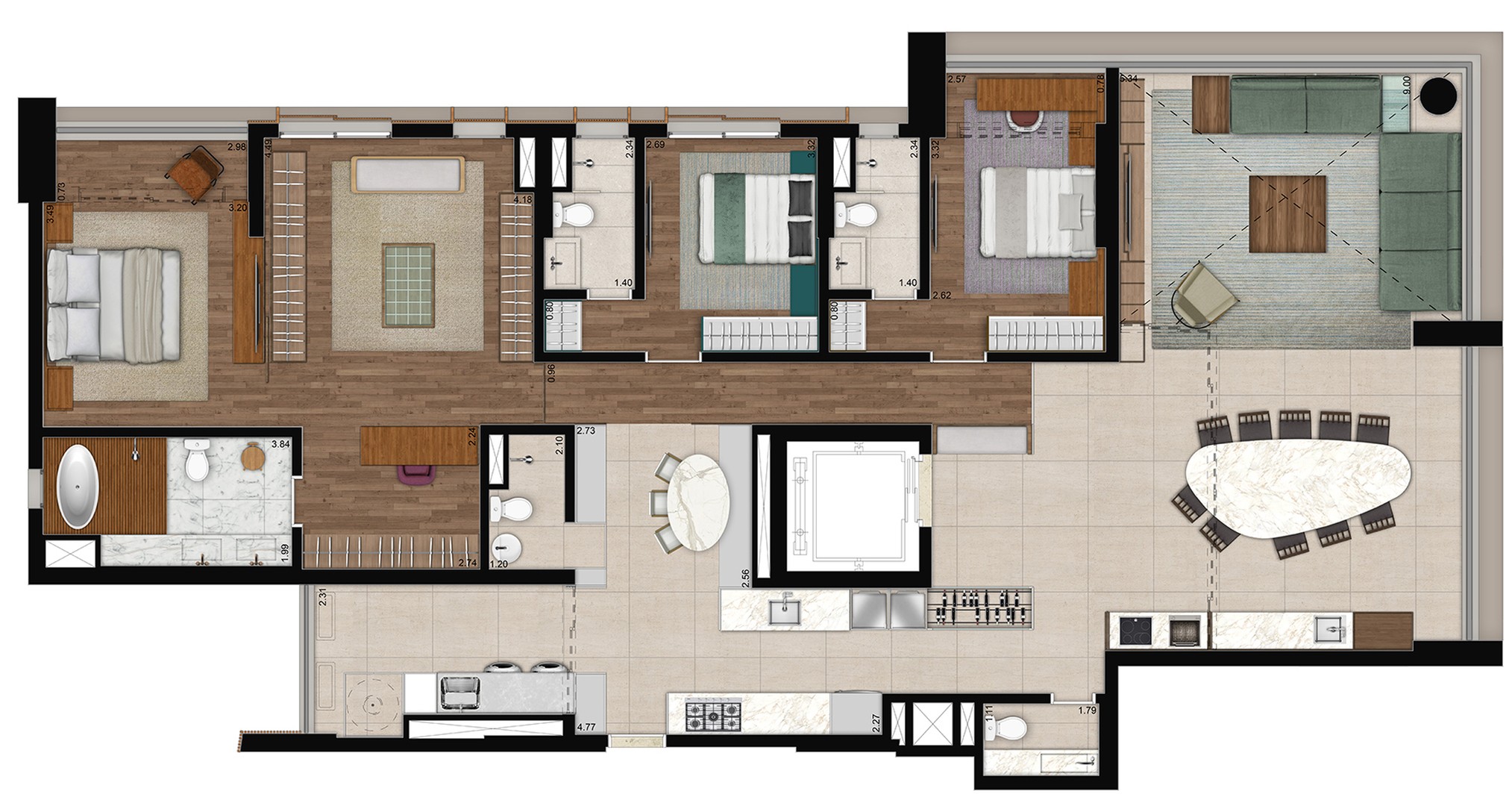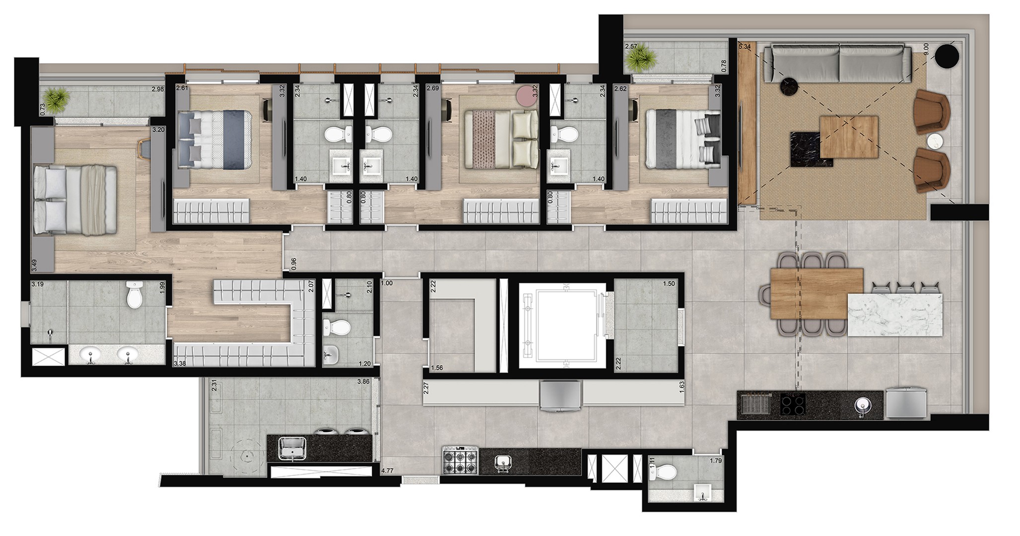 Com um design moderno e elegante, esse empreendimento proporcionará um ambiente amplo e aconchegante para os moradores, com espaços bem planejados que garantem a praticidade do dia a dia, assim como elevam o seu padrão de qualidade de vida.