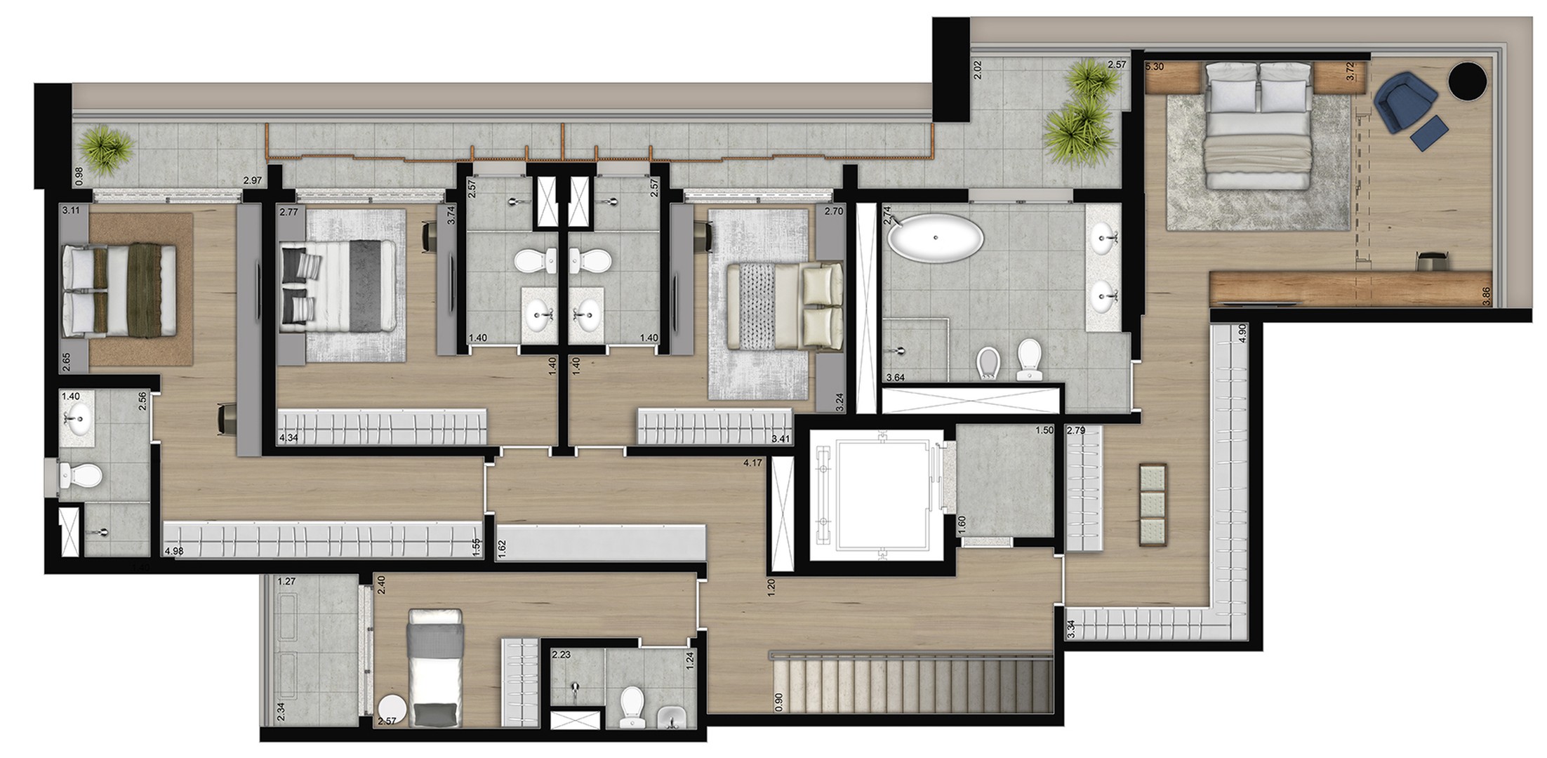 Reconhecido por projetar edifícios que se tornaram marcos na cidade, o escritório Aflalo/Gasparini inovou mais uma vez na concepção de um projeto único. A união da tradição com a expertise de soluções arquitetônicas exclusivas resultou em 3 edifícios planejados em cada detalhe. O destaque fica por conta da extensão dos ambientes internos, que proporcionam vista para terraços arborizados, como se cada morador contemplasse seu próprio jardim. Uma composição perfeita entre a estética da arquitetura e o melhor do urbanismo para seus dias.